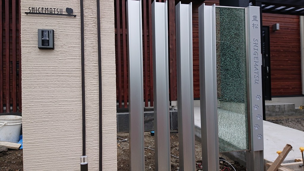 toledo オリジナル門柱・ジュエルグラス+アルミH鋼。