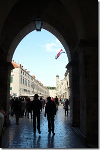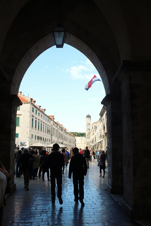 旧市街に入るには、幾つかの城壁の下の門を潜り抜けなければ入れません。 門を抜けると中世の様子を窺がえる街波が、フィレンツェにあった世界でいちばん古い薬局の次の次に古い薬局、世界で三番目に古い薬局が修道院の中に今でも営業を続けている街並みは別世界が広がり、頑丈な城壁に囲まれているのがドブロブニクです。