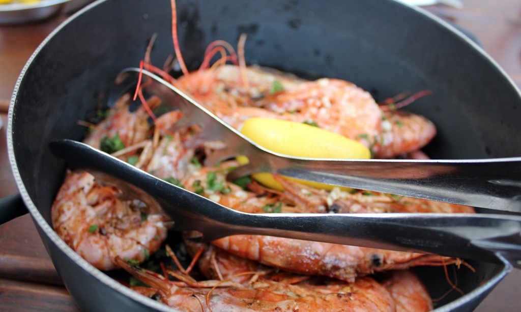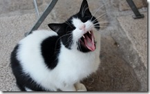 城壁を歩く前に、港の広場のような場所のレストランでランチ。 イカスミのリゾットとエビを外にあったテーブルで食べていると足元で猫がおねだり