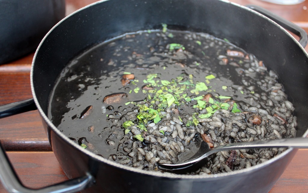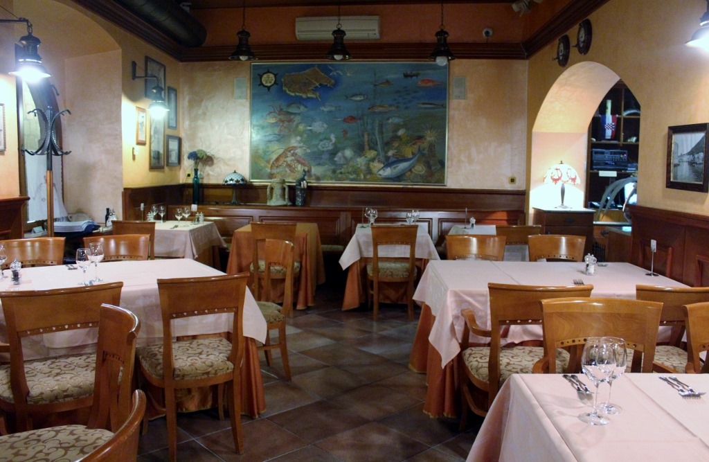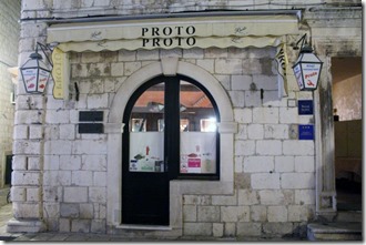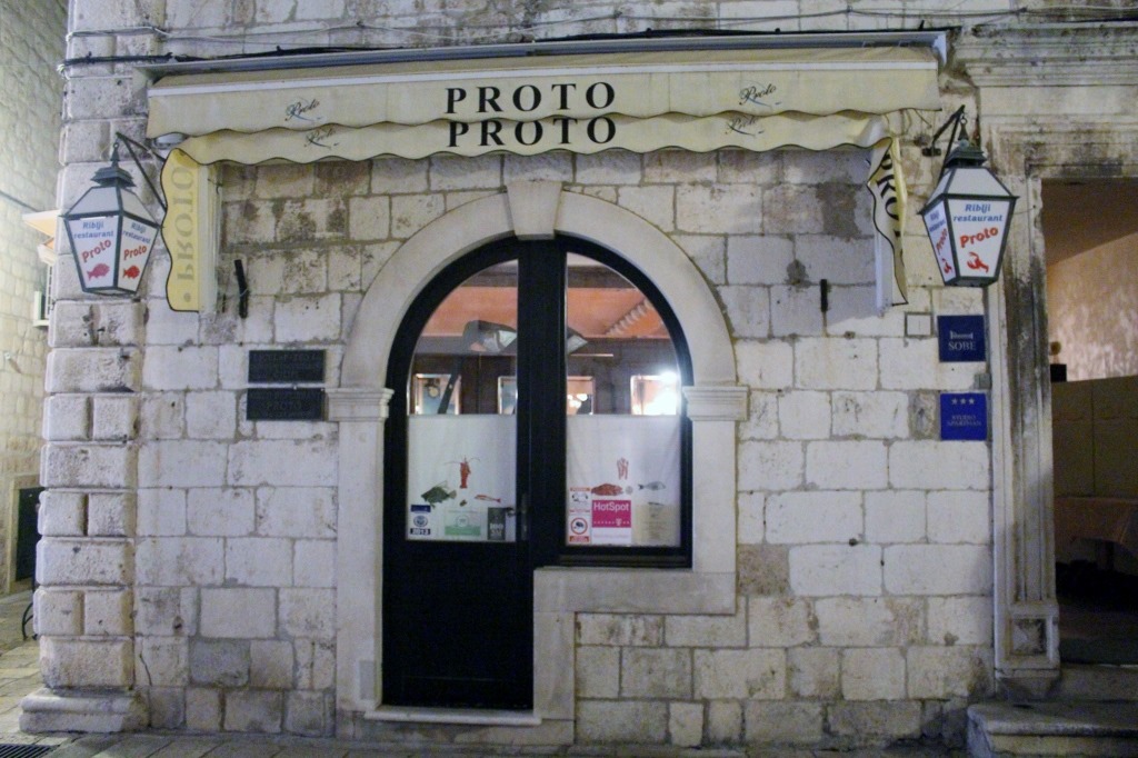 夜は、旧市街ある老舗のレストランプロトでアドリア海の幸を、イカスミのリゾット・オマールエビ