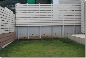 ブラッドストーンで作られた、テラスの上に居ても、外からの視線が気にならないように境界に高さが地上から2メートル30センチの高さでディーズガーデンのアルファウッドの樹脂フェンスで目隠しにしました。 近年、樹脂フェンスのメーカーが増えて、いろんなタイプの物が出てきていますが、当社でお勧めできる樹脂板はアルファウッドです、他のメーカーとの一番の違いは、二重構造になっていて樹脂板の特徴である伸び縮みが少ないので安心して使用できることと、表面に凹凸がありリアルな商品です、もちろん耐久性に優れています。