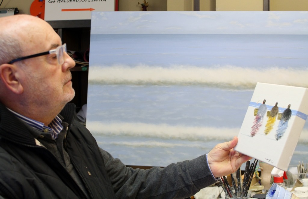 旅で、絵を購入する事があります。 スペイン・バレンシアの画廊で購入した絵が、画家が手に持つ、この絵が今家に飾れています。 一目惚れした絵で、海なし県で育った私には魅力的で、スペインの海岸、読めない雑誌を見せてくれましたが、全然読めませんが、本人が紹介されていて、少しは名のある画家なのでしょうようか、同時に買った絵は、丁度制作中ののもので、無理にお願いして購入してしまいました。 旅は、思いがけない出会いが楽しい。