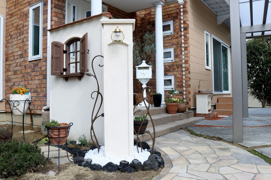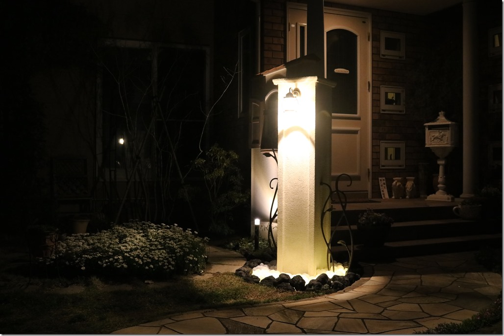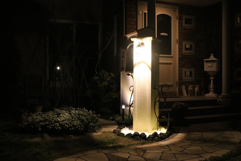 使い方は色々で、門柱のH鋼の中に入れたり、門柱の下に敷き詰めたり、ライティングをしたり、アイディアが膨らむ商品です。