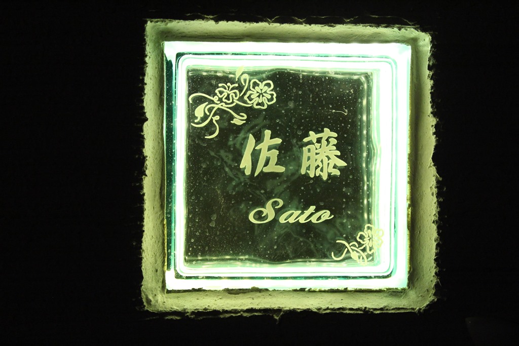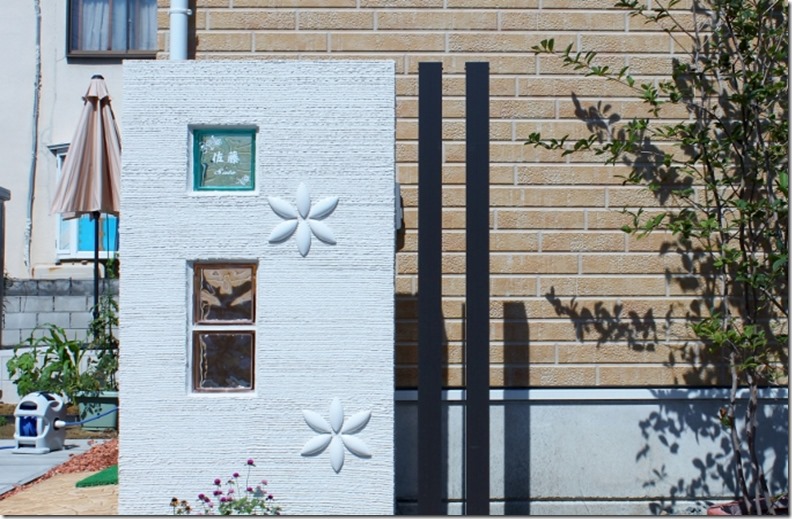 TOLEDOオリジナルのガラスブロックサインを取り付けた門柱です。
