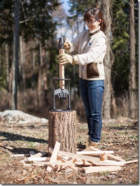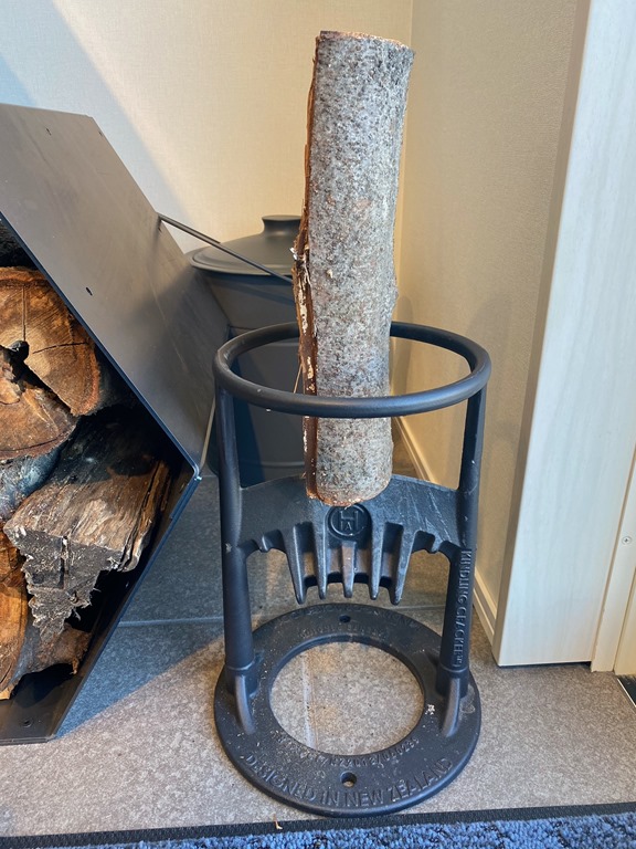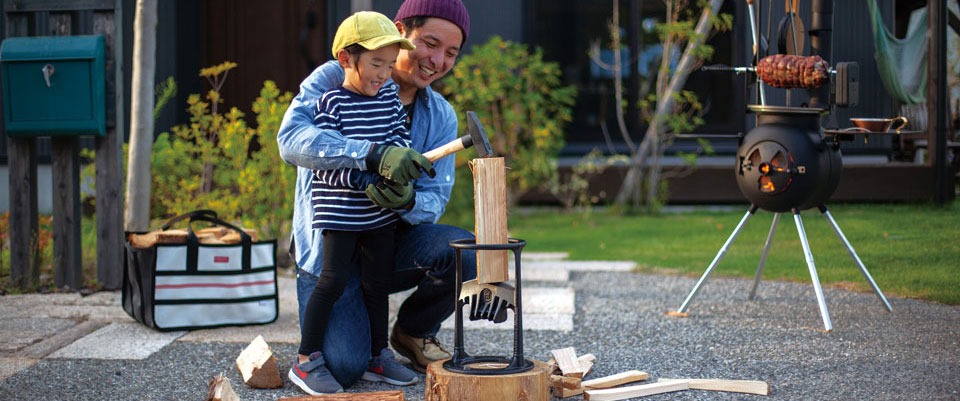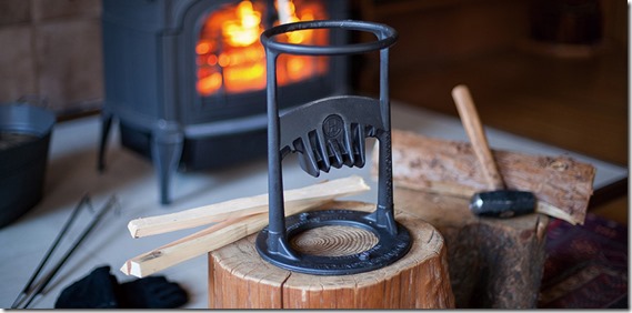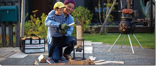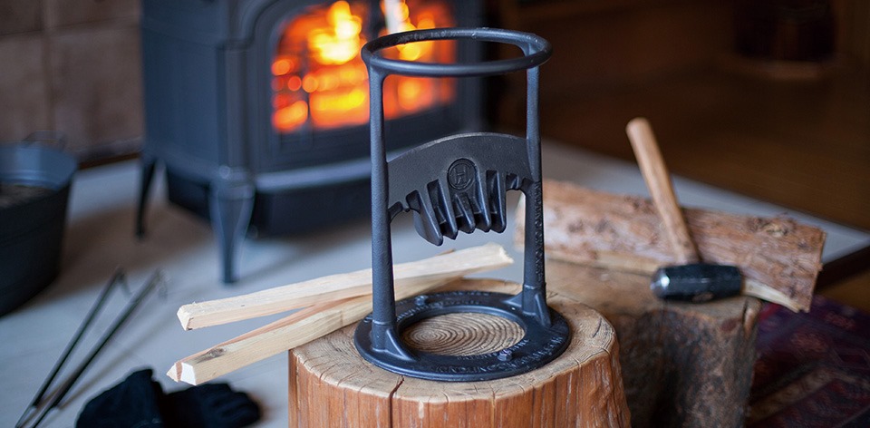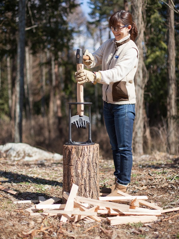 薪を割るときにあると便利なグッズです。これを使うと女性でも簡単に薪を割ることができます!ファイヤーサイドさんの「キンドリングクラッカー」です。面白いように薪が半分に割れますよ。