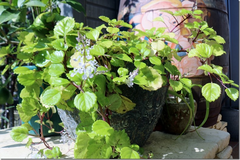7年前に、庭友から小さなスウェーデンアイビーを貰い、寒さには弱いので、冬の間は家の中に入れ、暖かくなると庭に出して育てているスウェーデンアイビー。