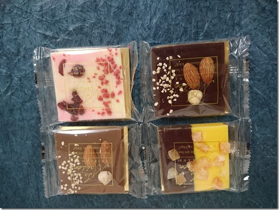バレンタインデーにチョコ頂きました。 お取引先から、バレンタインデーに ラ・メゾン白金のチョコレートを頂きました。 ホワイトチョコにドライフルーツ(クランベリー)やいちごの粉末がかかったものや オレンジピールのチョコレートとても美味しかったです。 ごちそうさまでした