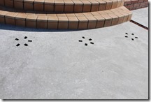 玄関ポーチの手前の土間コンクリートにも、ポイントとして埋め込みました。 厚みが2センチほどあり、ガラスはほとんど変色しないので、何時までも、この感じで、綺麗でいてくれます。