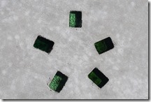 3.5センチ×5センチの大きさのカットダルは、ひとつのサイズとしては小さいので、複数で模様を作り埋め込んでいくことが多いです、コンクリートの広い面積のなかにばらばらに埋め込むよりも、ある程度まとまって埋め込んだ方が綺麗に見えます。色き14色揃えているので好みの色を混ぜて使用するのが一般的です。 カットダルの色を選ぶときにも調合することで微妙な色の違いを作れますが、作るたびにまったく一緒の色を作り出すのは難しいことです。