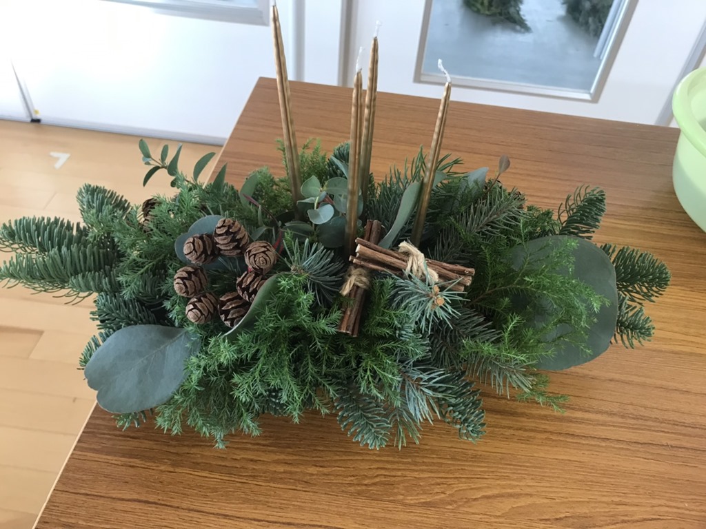 12月に入り、クリスマス、お正月とイベントが続きますね。ながの緑育協会には「花と緑そして人を育てる講座」があり毎年4月から翌年の3月まで月に1回で年12回の講座があります。12月はクリスマスクラフトの講座でゴールドクレストやコニファーなどを使いテーブルを彩るクリスマスクラフトを作ったそうです。crisumasukurahuto