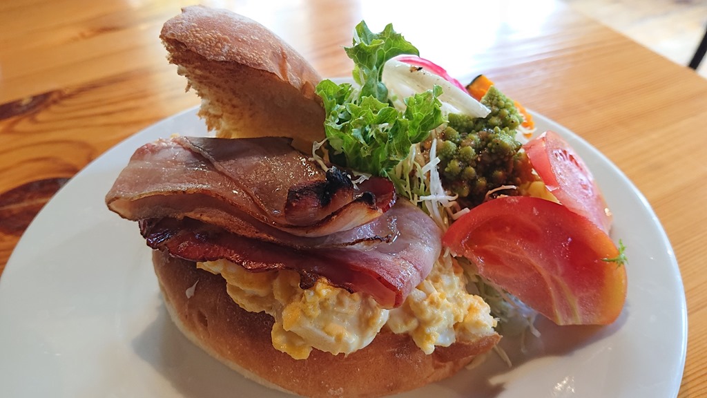 ベーコンサンドは、野菜がたくさんあり、卵がぎっしり、そこにベーコンで、結構お腹が膨れます。 カプチーノに手造りチョコレートアイス、紅葉が始まった庭を眺めながらのモーニングは、一瞬時を忘れてしまいそうです。