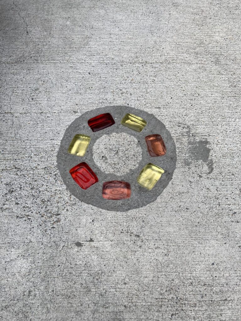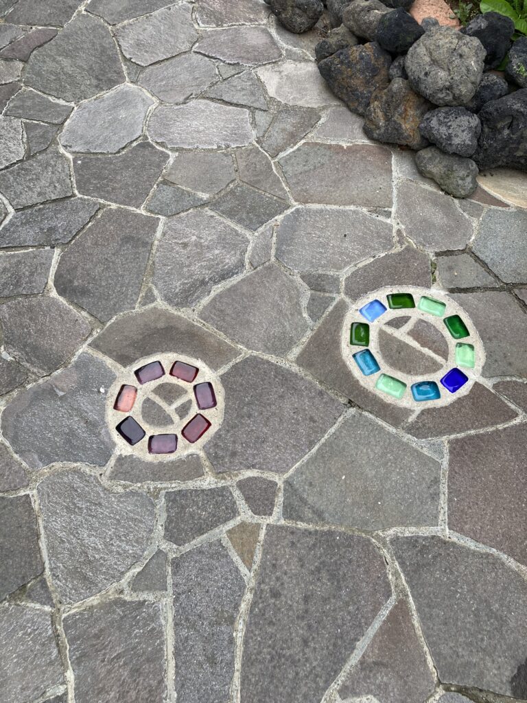 先日現地調査にお伺いしたお家は、以前トレドで施工させていただいた現場でした。トレドオリジナルのカットダルがたくさん土間コンクリートに埋め込まれています。よく見ると今現在トレドで販売している、流し込みガラスの「ニューカットダル」とは違い、1枚の大きなガラス板を手作業で割って仕上げたカットダルです。色味もニューカットダルとは少し違いますね。