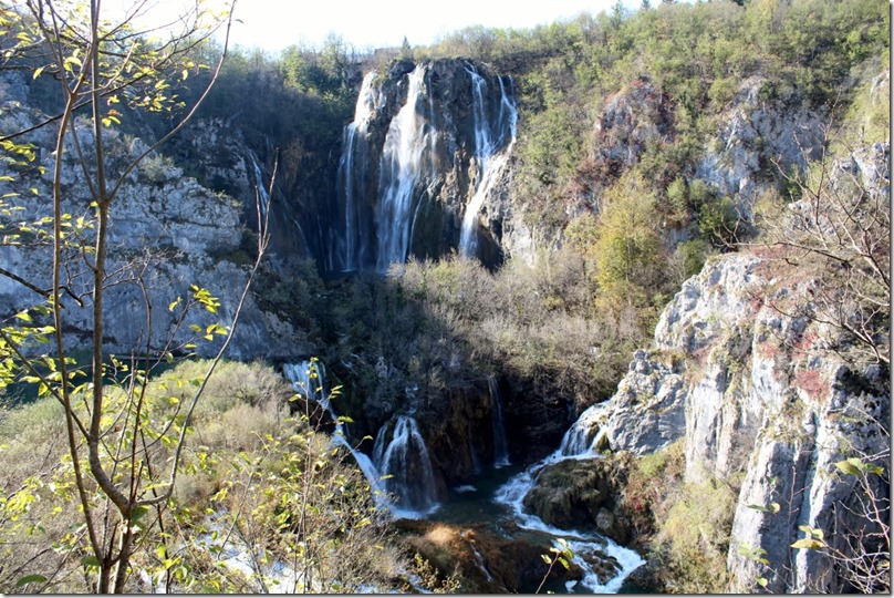 公園の入り口を入りしばらくすると眼下に滝が見えてくる、滝の奥に湖群が広がり続いている歩道を歩いていくのだが、到着する二日ほど前に積雪があったようで、少し心配をしていた。
