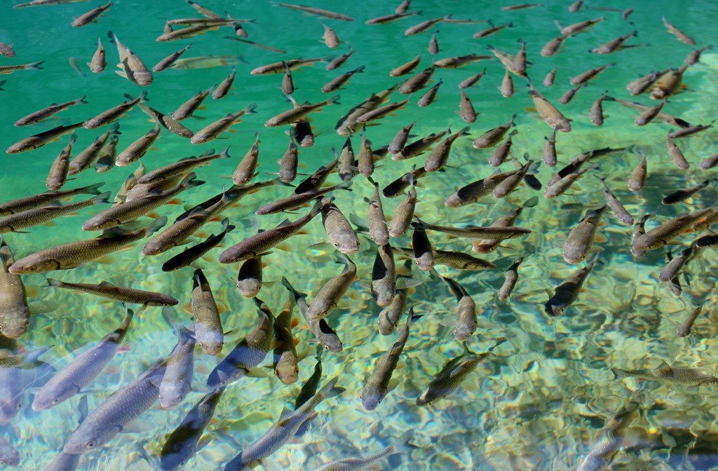 湖を除くと、どんな場所でも、多くのマスが見られる、人が近づいていっても、まったく逃げる気配がない。 公園では魚を獲る事は禁止されていて、これは植物なども同じ事。