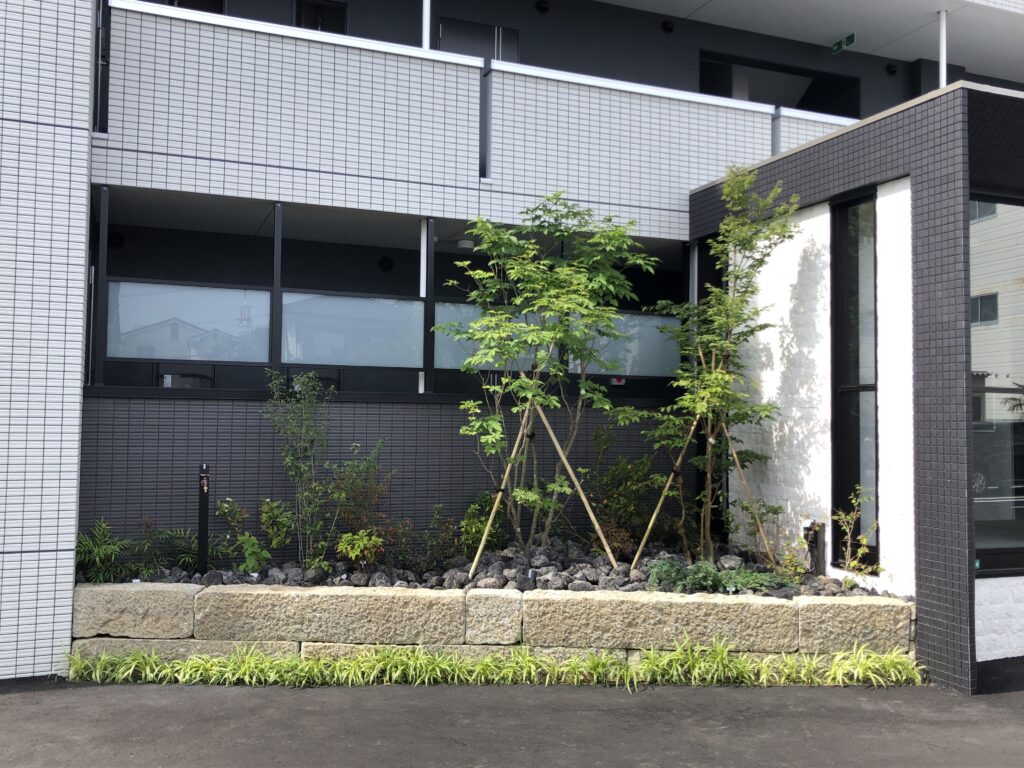 以前よりご縁があり、トレドで新築マンションの植栽スペースを担当させていただきました。