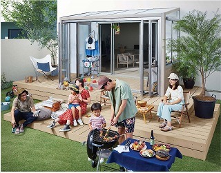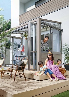 デッキテラスやガーデンルームの使い方はそれぞれの家族のスタイルで色々です。趣味のための空間だったり、天気のいい日は外で食事をしたり、夜はのんびり星空を眺めたり、ペットのためのお部屋にしたり・・・リクシルのガーデンルームは種類が豊富です。用途に合わせて折戸パネルをフルオープン・フルクローズできる「ジーマ」狭小スペースへの設置も可能で腰壁タイプや豊富なオプションがある「ココマ」細部にまでこだわったエレガントなデザインが特徴の「暖蘭物語」花粉やホコリ、風雨を気にせず洗濯物が干せる「サニージュ」そして2020年4月発売予定の「GARDENROOM GF」が新しく加わります。GARDENROOM GFは敷地条件やライフスタイルに合わせて多彩な仕様から自由にセレクトできます。たとえは設置スタイル。デッキ使用・インナーデッキ使用・土間仕様。また積雪50㎝・積雪100㎝まで対応する高強度仕様もあります。その他色々な使い勝手のいいオプションも豊富です。