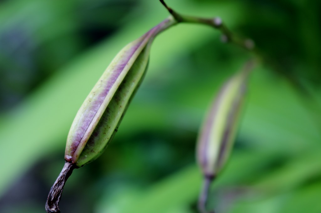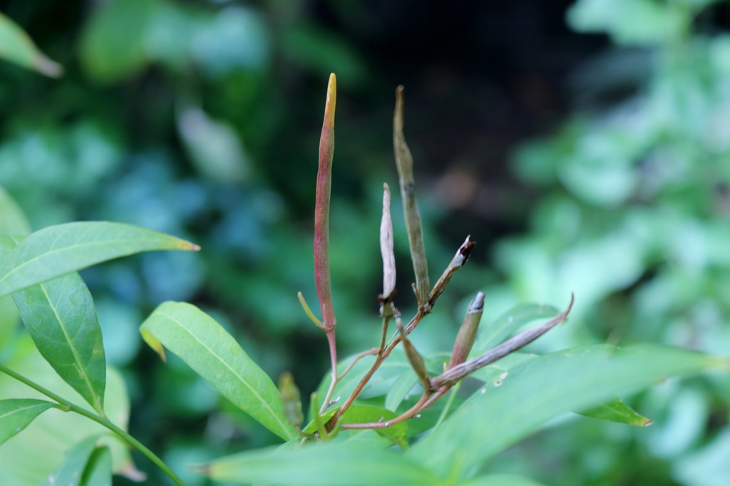 シランは、少し大きめの種ですが、あまり見る事がありません、どうしてかというと、花が終わった後、大きな葉が気になり、種を付ける前に切り取ってしまうことが多いからで、今年は、庭の手入れをあまりしていないので種が付きました。