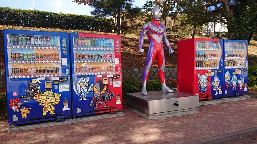 先日、福島に行った時に立ち寄ったあだたらサービスエリアにウルトラマンがいた、ウルトラマンの両枠に自販機が2台ずつ置かれていて、絵柄もウルトラのようだったのがとても印象的で、ウルトラマンの眼が光っていて、乗ってる台にスピーカーらしきものがあったから、シュワッと聞こえてくるのか?
