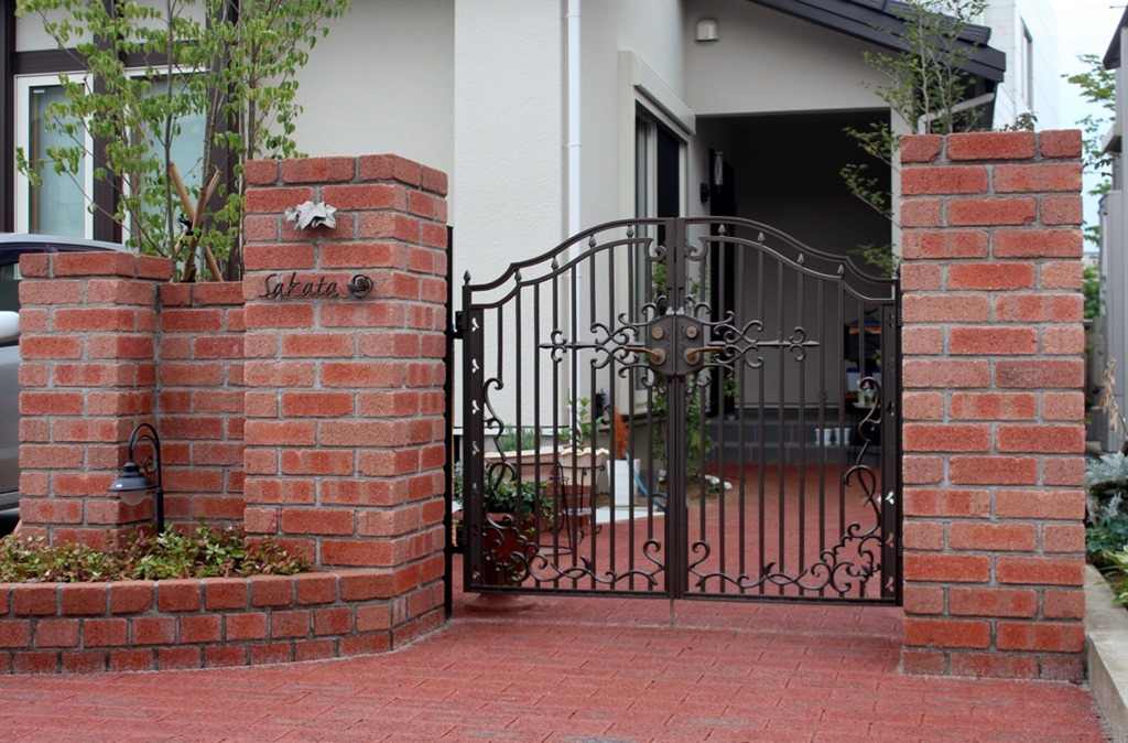レンガ積み門柱は、女性に人気がありますが、塗壁と比較すると積み方を工夫したり加工したりで工夫は少ないのですが、それでも人気があります。 レンガ積み門柱で気を付ける事は、素材の選択で、寒冷地には向かないレンガを使用しないことです。