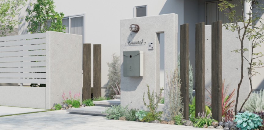 ガラスブロックは厚みのあるガラスで、存在感がありとてもおしゃれな門柱になります。