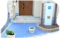 自然石貼り、スタンプコンクリート、ガラス埋込など多種のデザイン、要望にお応えします通路部分・駐車場部