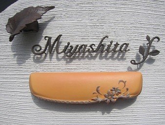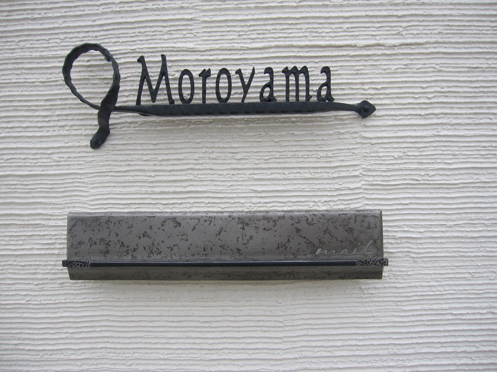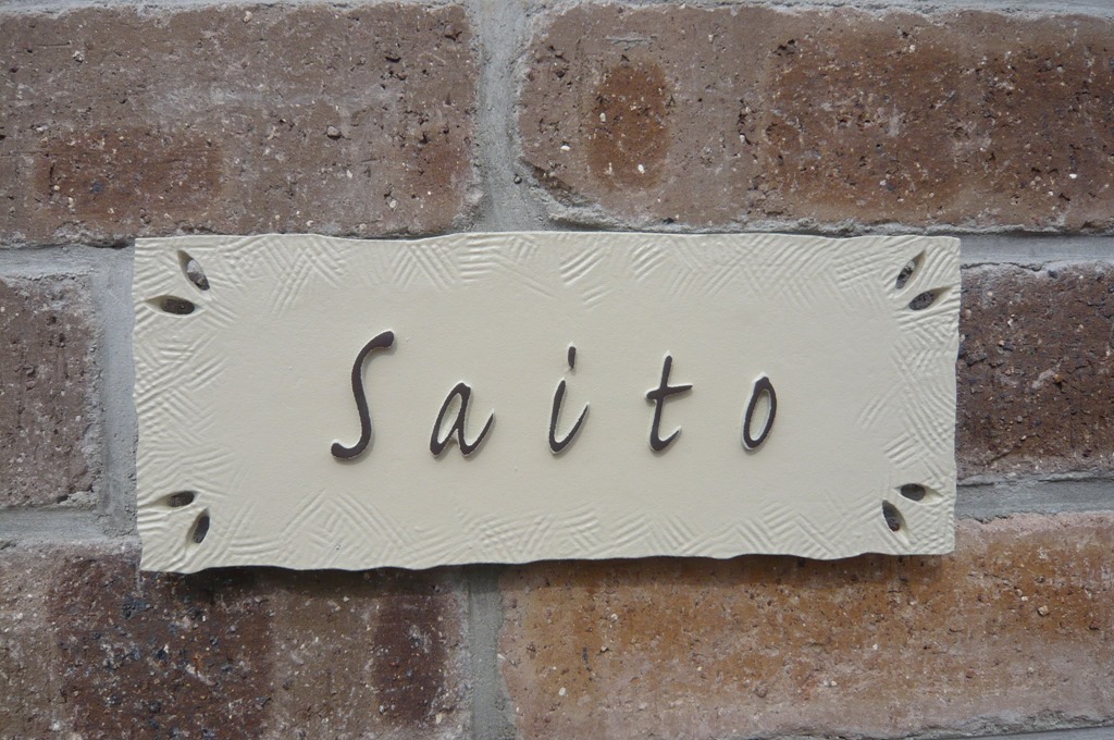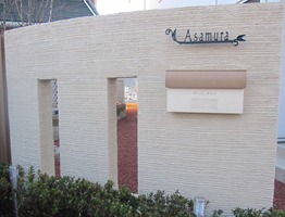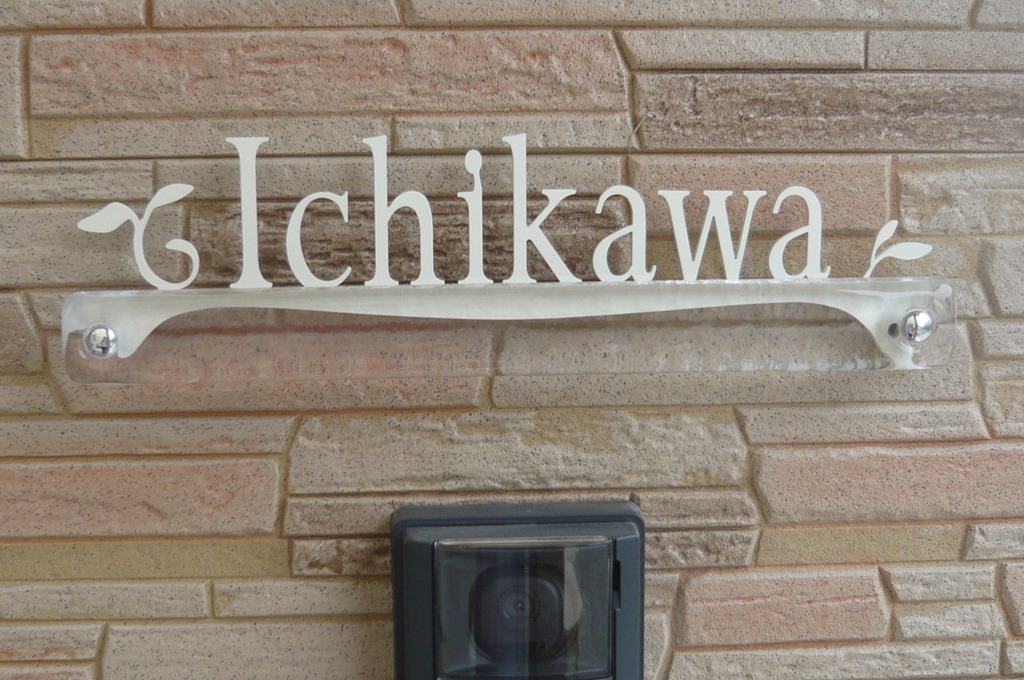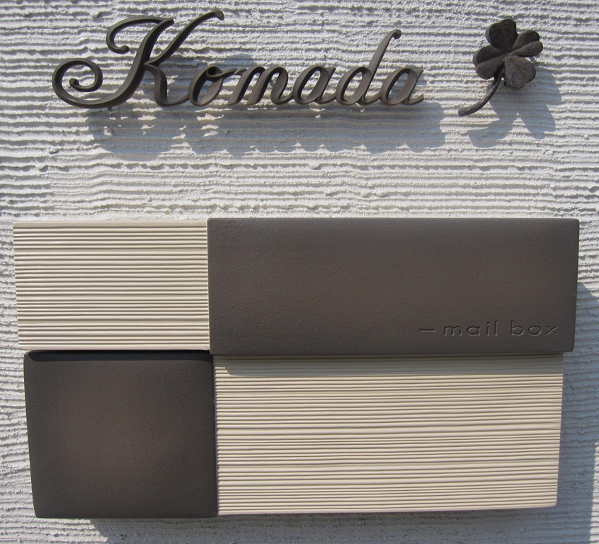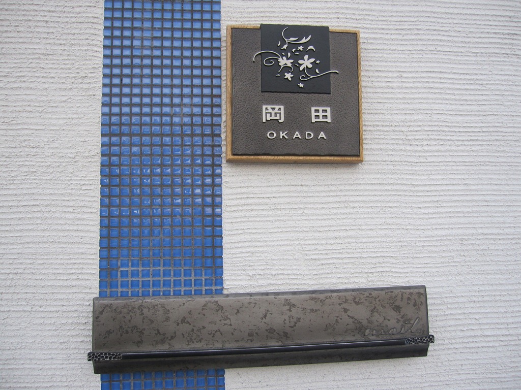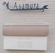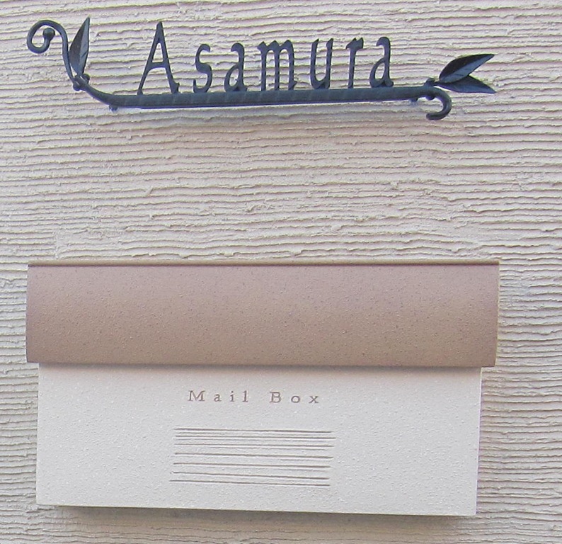 表札は ディーズサインA-03のブラックを使用しています、アルミ鋳物でできているので錆る事が無く、門柱の壁を汚すことがありません鍛鉄風の文字は飽きる事の無い素敵な表札に仕上げています。ミニオーナメント 表札の横に一緒にミニオーナメントを施工することが多いです6タイプあるミニオーナメントは、サインと同じ鍛鉄風にしあげられ素敵なアクセントになりますStucco-U ポストは門柱埋め込み式でスタッコ塗りとスペイン瓦をイメージしたデザインでFRP制の素材で作られた耐久性の良い商品です。表札灯 サインの斜め上に取り付けられた葉っぱの形の表札灯リーフはデザインも素敵でLEDの照明がサインを照らしてくれます。