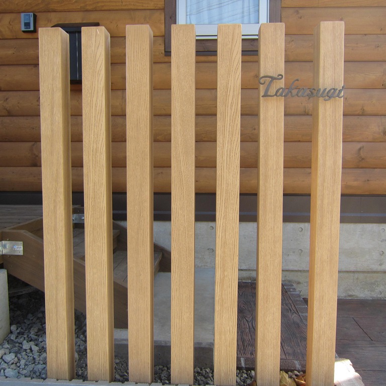 耐久性のあるFRP「繊維強化プラスチック」を素材にした木目調のディンバーはいつまでも綺麗なエクステリア商品です。