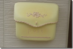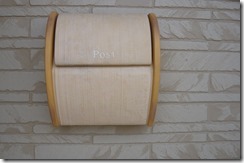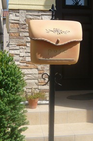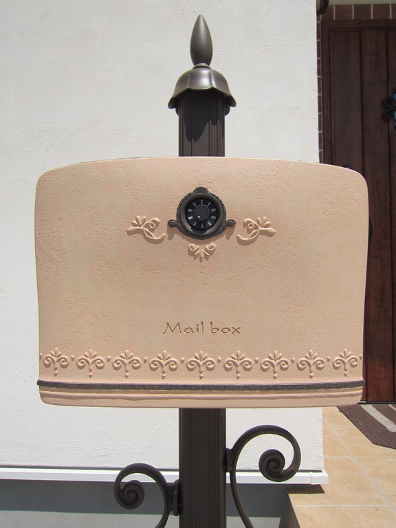 右側 ディーズポストで2011年に発売されAngeアンジュのシャンパーニュピンクをメールボックスポールに取り付けました。