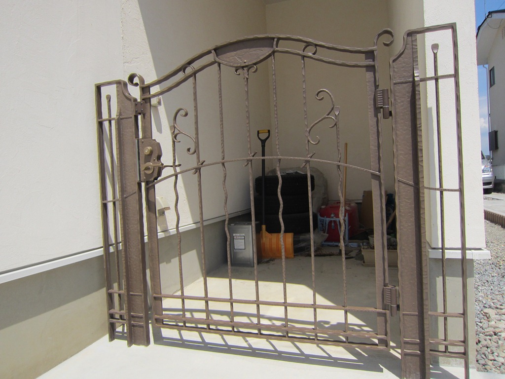 模様がデザインされています、収納スペースの入り口に、ディーズゲート、アール門扉を取り付けました、この