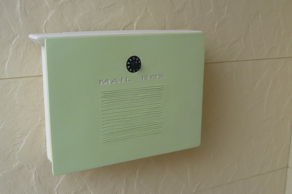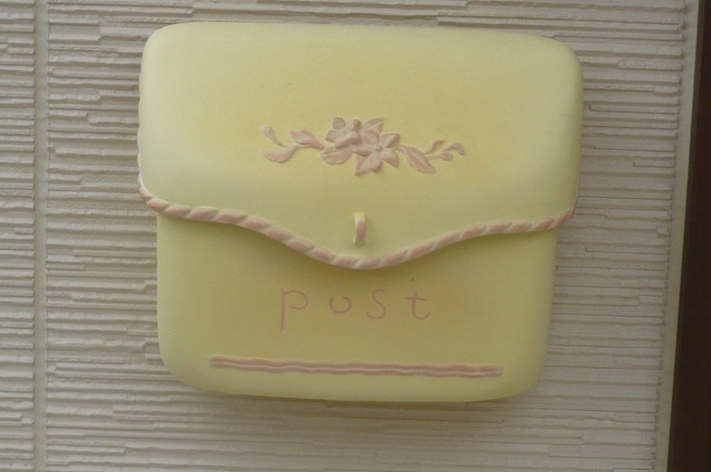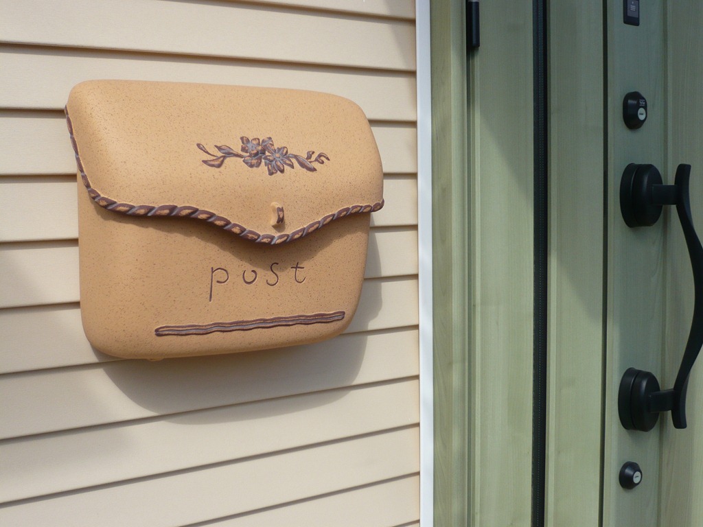 中側 ディーズポストPouchポーチのレモンを建物に付いている金物のポスト口がありましたが、付けさせて頂いた現場です。