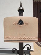テラコッタ風のかわいいPouchポーチポストの壁掛けタイプは玄関のアクセサリーにもいいです。