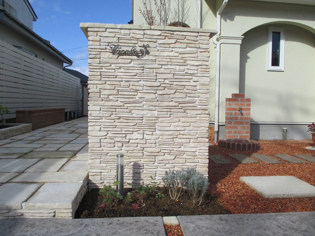ディーズガーデン・エクステリア商品を使用した門柱。