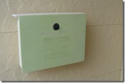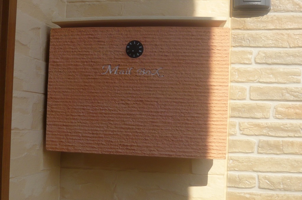 左側 ディーズポストPouchポーチのオレンジカラーです、玄関のすぐ横にありますが、可愛らしい感じでいいですね。