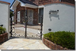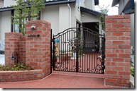 ヨーロッパの町並みに出会いそうな風景の門扉。