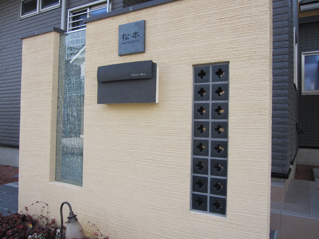 長野市の施工現場です。 この施工現場で使用しているディース゜アイテム ●ディーズサインA-07 ●ミニオーナメントA ●表札灯 ●ポスト ポーチF