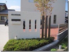 長野市の施工現場です。 この施工現場で使用しているディーズアイテム ●ディーズサインA-07 ●ミニオーナメントA ●ポスト アンシ゜ュ ●機能門柱シャルル ●Rフィックスフェンス ●アール門扉2型 ●ティンバー