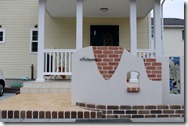 門柱をパティオ角柱Aショートで施工してエクステリア現場です。 サインはディーズサインA-07ブラックでサイン上にLIXIL美彩LED照明マリンライトを角柱の周りを浅間石で囲み中にリコストーン「ガラス玉」を敷き込み夜になのとLED照明点灯して素敵です。角柱の右側にサイドフェンスBの取付。
