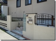 門扉は、ゆとりのある詑1m巾の片開き門扉で両脇のデザイン門柱が素敵です。