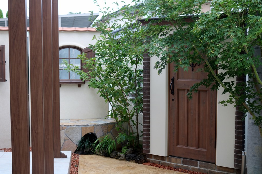 柳沢様の玄関先には、カンナミニ物置も置かれています、楽しく過ごせるお庭になって良かったです。 お客様の声