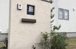 とってもシンプルで素敵な門柱が完成しました。 W2000と広めの幅の塗り壁に、表札がわりの数字を入…