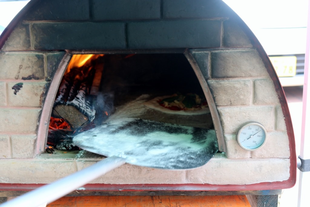 調理ができる状態になった窯に生地を入れて2分程度で美味しいピザが焼きあがります。