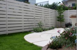 家の前の庭・駐車場の東西を樹脂板で目隠し施工した現場です、アルファウッド・アイボリーを東西どちら側…