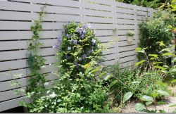 ガーデニングで素敵な庭の背景に樹脂板塀を施工して、外が見えなくなることで、庭がより素敵に見えるよう…