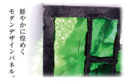 大胆に割ったガラスと耐熱耐候性塗装を施した樹脂フレームによるモダンなデザインパネル。手割りガラスの…