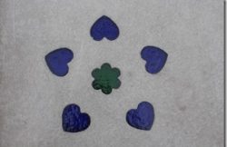 玄関前のコンクリートの床にカットダルやダルフラワー、ダルハートを埋め込んだりボーダーアートでアクセン