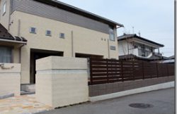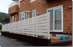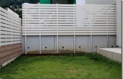 家の前の庭・駐車場の東西を樹脂板で目隠し施工した現場です、アルファウッド・アイボリーを東西どちら側…