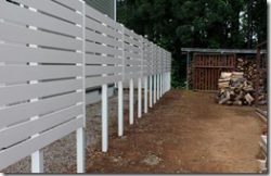 隣地の境界の長さが30メートル程ある直線に樹脂板アルファウッド・アイボリーで施工しました。 &…