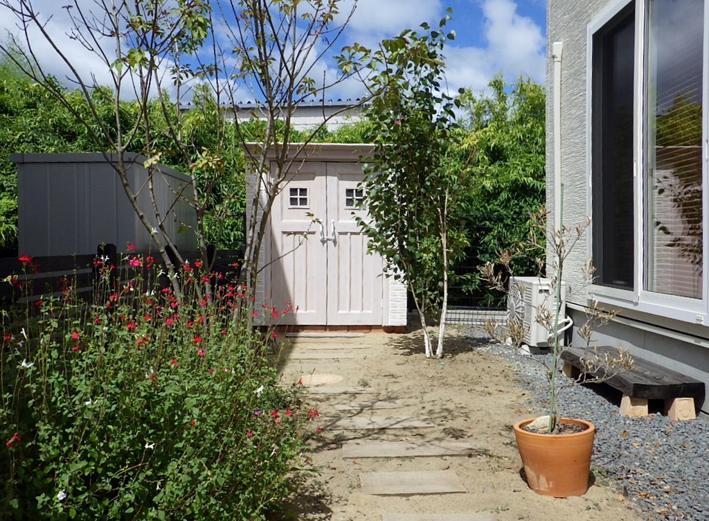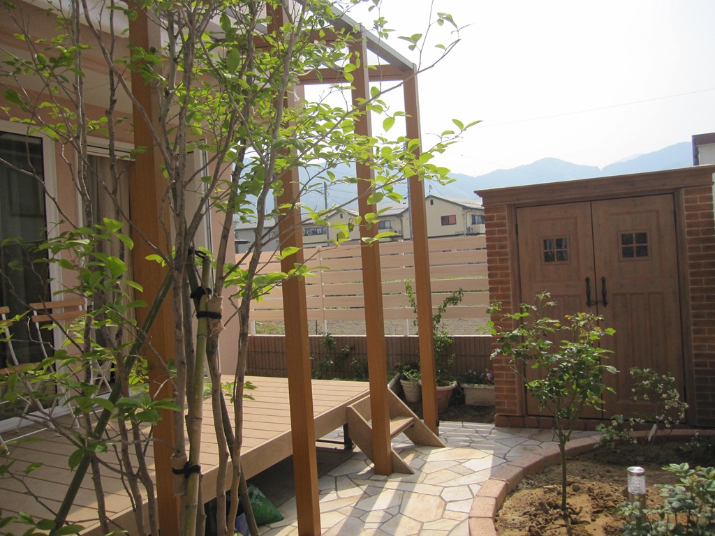 当社は、ショップを出すまでは多くの住宅メーカー・工務店のデザイン・施工をさせていただいていました。そのほとんどが、デザインと見積もりを渡すだけで打ち合わせ・契約は住宅メーカー・工務店の方でしていたので工事価格が高くなるし、お客様にきちんと説明できていないことも多くトラブルも多かったです。 そんな事が納得できずにショップを作りお客様と直接打ち合わせさせて頂きエクステリア施工させていただいています。