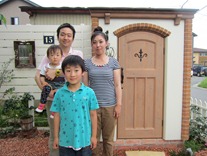 ボーダーアートはコンクリートの床にポイントで模様を型押しします、その模様にステインで色を付けることができるんです。家族三人で色付わしてもらいました。模様は葡萄模様で、葉の部分は緑にして実の部分はブラウンにしてもらいます、外構の仕上げをお客様自身で行う とても良い思い出になったと思います。