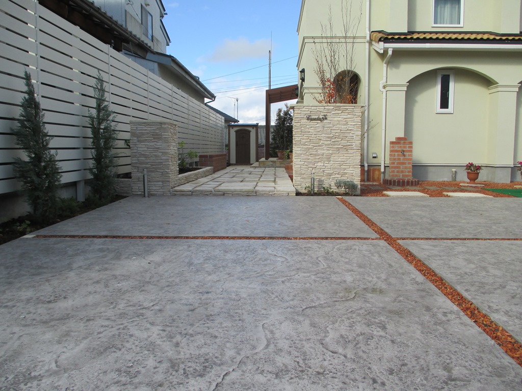 通路(アプローチ)の場合、同じ面積であっても見積もり価格に大きな金額の幅が発生します。コンクリートだけの床の場合、スタンプ・ペーパーで色と模様を施す場合・天然石・タイルを貼る場合、コンクリートを打たずに敷石・インターロツキングなどで施工する場合など様々な方法が考えられ、価格も変わってきくるので自分の好みに合うものを選ぶのが良いです。